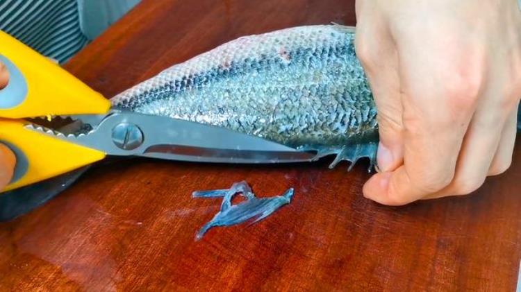 第一步:首先将鲈鱼的鱼鳍给减下来。做这一步的目的只要是为了后期摆盘比较漂亮。
