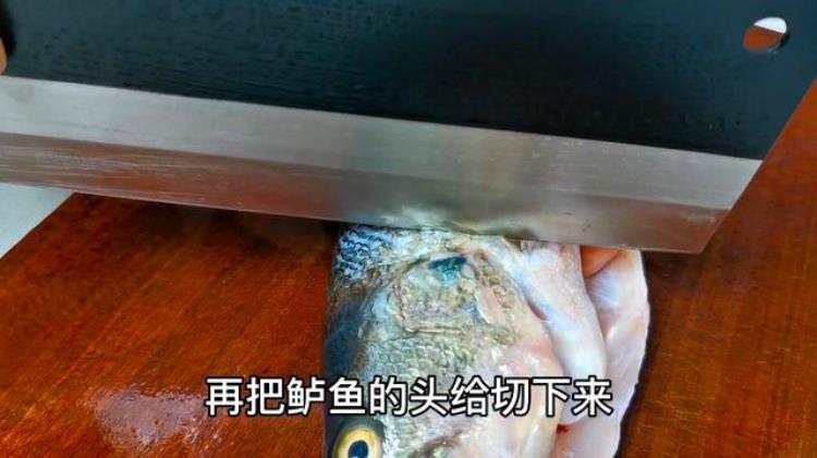 第二步:再把鲈鱼的头部给切掉。把尾巴也给切掉。这样可以更加形象地摆出孔雀开屏的造型。