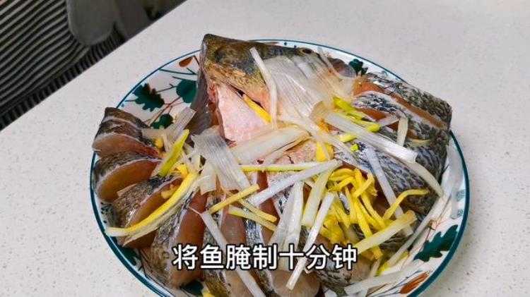 3、无论任何的鱼,都有腥味,所以要切适量的葱姜丝,将鲈鱼腌制10分钟。这样能够去除腥味。