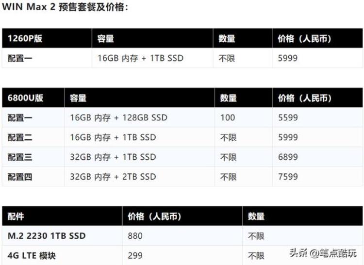 从上图可以看到,已公布的预售版本中,i7-1260P仅有一款搭载16G内存 1TB SSD的配置,该配置与6800U版本的16 1TB配置同样为5999不限量。但6800U还设置了一个5599的16GB内存 128GB SSD档位(很明显比较适合自己有闲置SSD的用户低价入手),限量100台。余下的6800U高配版本,分别为32GB 1TB,32GB 2TB的组合,预售6899和7599。