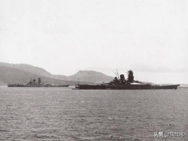 图:1943年停泊特鲁克泻湖的日军战列舰“大和号”和“武藏号”