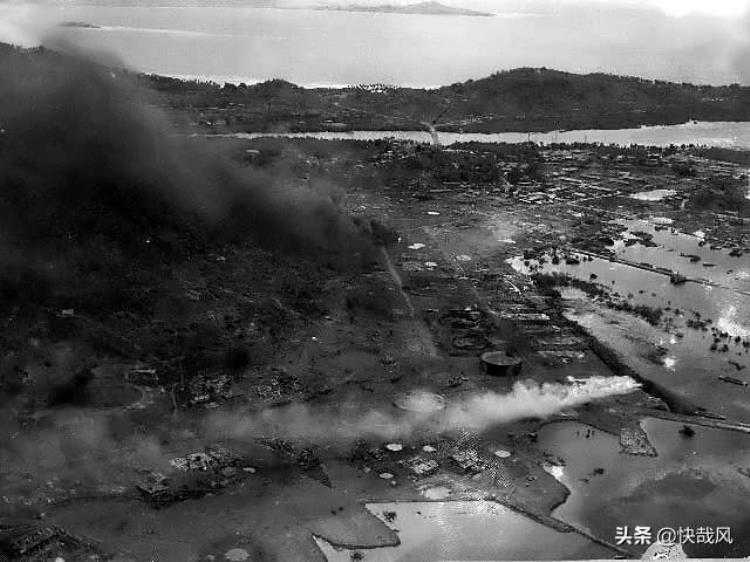 图:密克罗尼西亚群岛遭空袭的空中俯拍照片