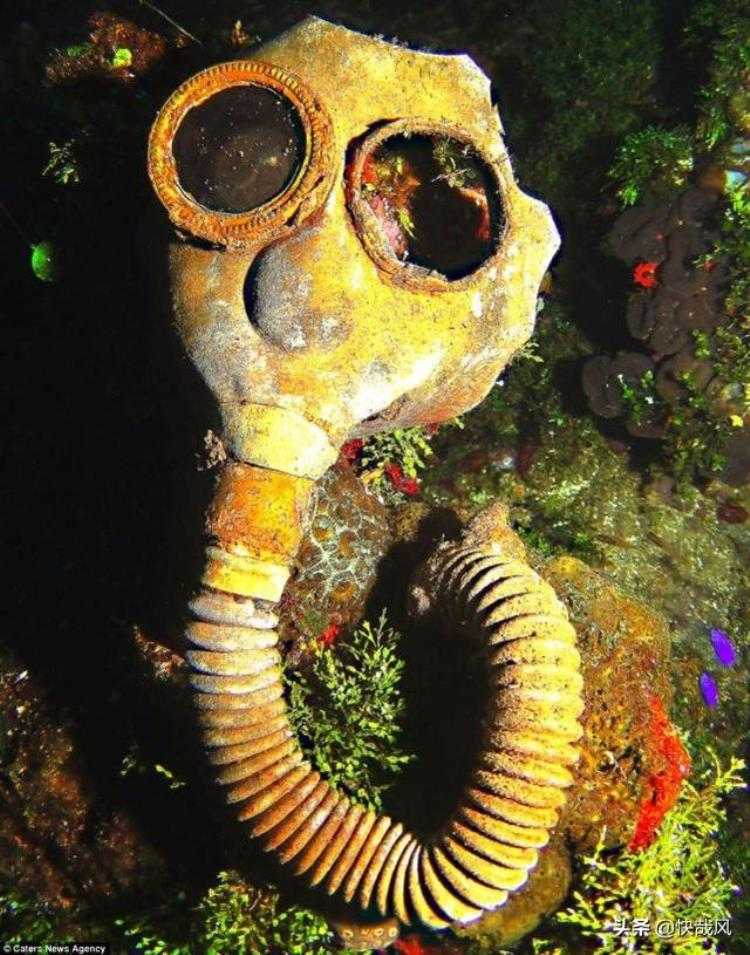 在15米以下的湖底,透过清澈的湖水,潜水员可以轻松游过战舰残骸的甲板,与被水生动植物堆砌的坦克和飞机合影,不时能看到日本兵的恐怖遗骸。