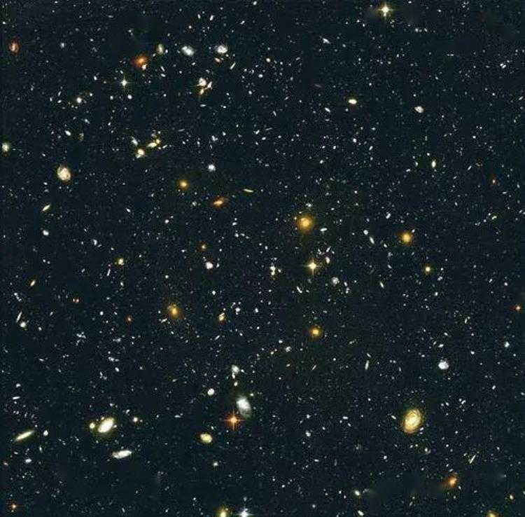 通过哈勃太空望远镜观察,将它的镜头对准夜空里的一个小角落。