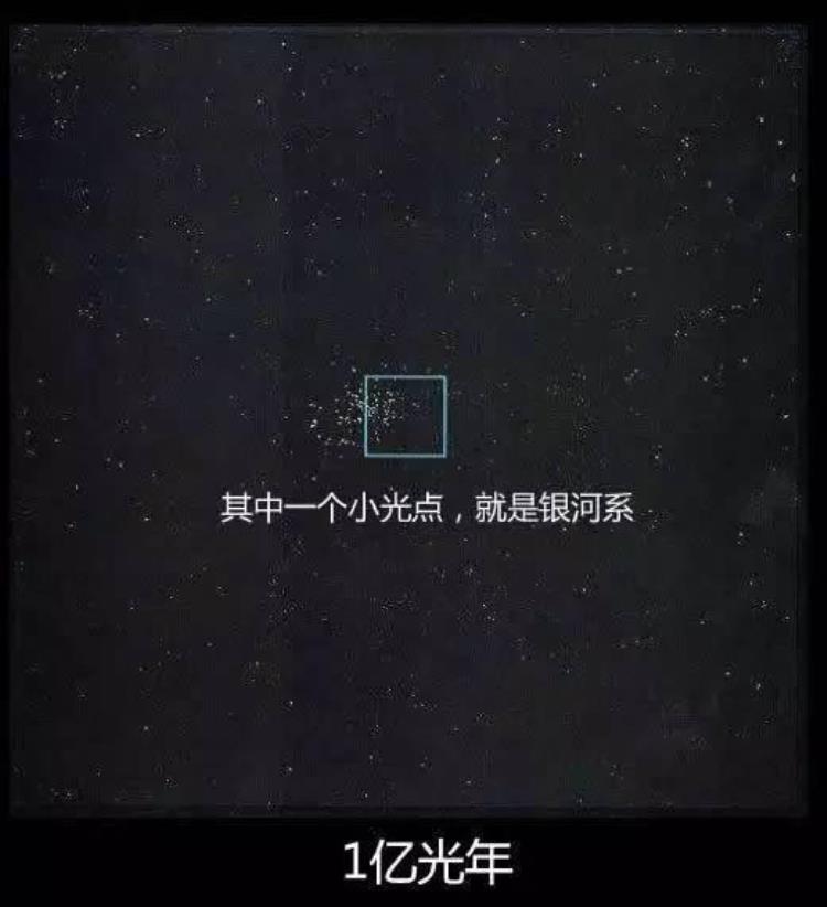 来到一亿光年以外再来看银河系,也就是是一个光点。
