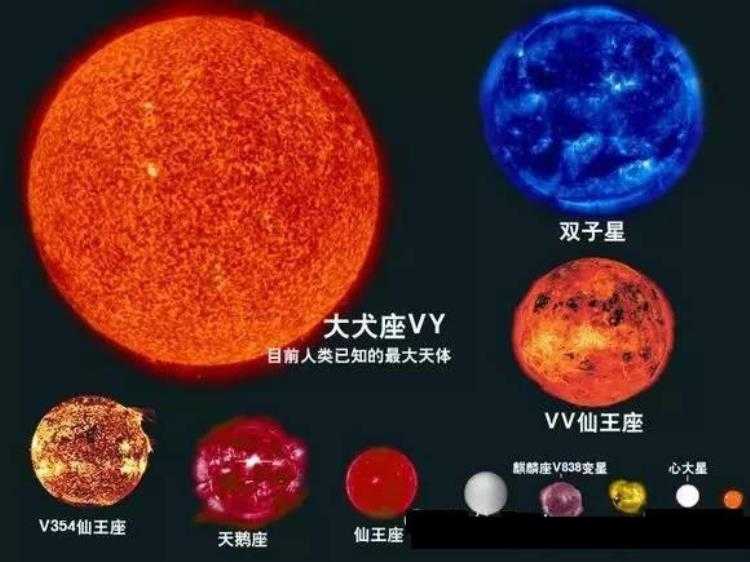 2012年以前,VY Canis Majoris(大犬座VY星)是已知的最大恒星,距离地球约3900光年。据观测,半径为太阳的2069倍,体积至少是太阳的80亿倍!