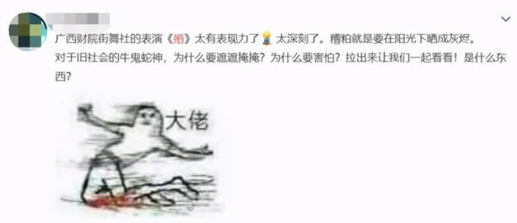 前段时间,广西财经学院街舞社一段以旧社会为背景、名为《殙》的舞蹈在网络上引起热议。