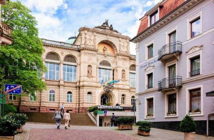 19世纪中期,豪华赌场Kurhaus在此成立,赌场前种植的大片草坪,四季常青,这也是德国留存至今最古老的赌场之一。
