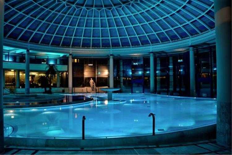 巴登巴登的卡拉卡拉浴场占地面积达4000平米,分为上下两层,下层为室内加室外温泉泳池,上层为桑拿室。