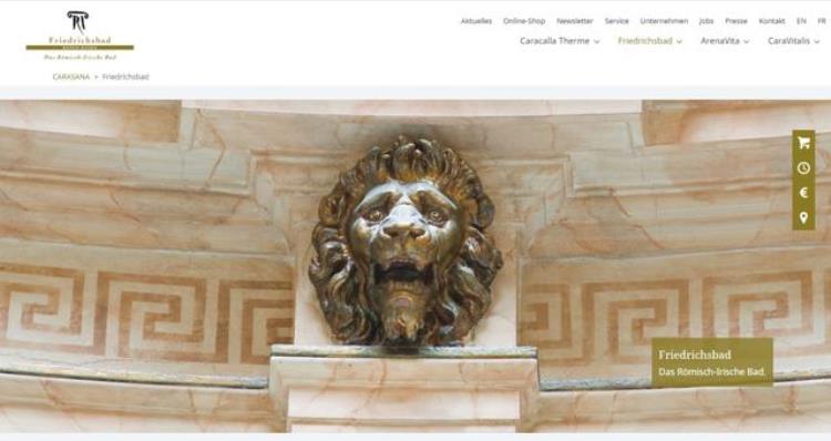 弗里德里希浴场的历史可追溯至1877年,该浴场修建于罗马浴池遗迹之上,建筑风格以意大利文艺复兴时期为基础,混合了罗马与爱尔兰式洗浴文化,即提倡裸浴,男女混浴,仅允许14岁以上儿童进入。