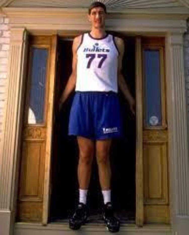 乔治.穆雷桑是罗马尼亚人,是有史以来身材最高的NBA球员,身高是2.31米,他能长这么高也是因为脑垂体疾病所致,而他的职业生涯也因为脑垂体疾病玩完了,在NBA打了一个赛季之后就没有球队再要他了,但是凭借着顽强的毅力,他克服伤病,最后又重返了NBA