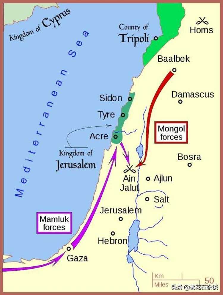 西征蒙古军队在叙利亚及巴勒斯坦地区的进军路线