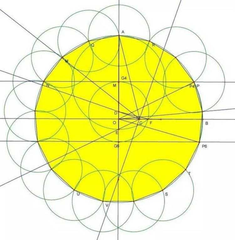 以1/2弧P4P6为半径,即可在此圆上截出正十七边形的所有顶点。
