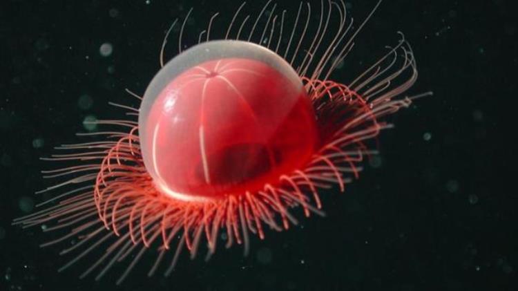4. 太阳水母太阳水母是一种不寻常的水母,也是一种小型的食肉动物,被称为“水螅虫”。这种水母有两种已知的物种,它们都喜欢生活在762米以下的深海。这种生物的圆形顶端,或者叫“钟形”,通常直径在1.9-3厘米之间,估计有1500根红色的触须附在上面,用来推动自己在水中前进。与其它大多数透明的水母不同,太阳水母是不透明的红色。