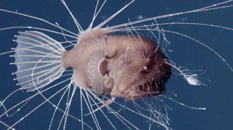 5. 海魔如果你对琵琶鱼很熟悉,那么你就会知道它们是地球上看起来最像噩梦的鱼之一,它们张着大嘴,满是锋利的牙齿,脑袋上伸出奇怪的诱饵。已知的琵琶鱼大约有168种,而选择哪一种是最丑的是相当困难的。一个最有可能的竞争者是海魔,它发现于水深100- 1510米的深海地带,这种漆黑的物种有一系列生物发光的触手。雌性能长到20.3厘米长,而雄性则不超过1.27厘米。在2018年以前,人类还从未见过活着的海魔标本。不过在那一年,一组研究人员在水下792.5米处捕捉到了一对交配的海魔。