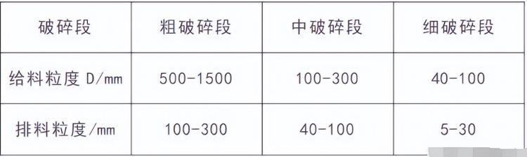 比如破碎阶段分为粗碎、中碎、细碎阶段。