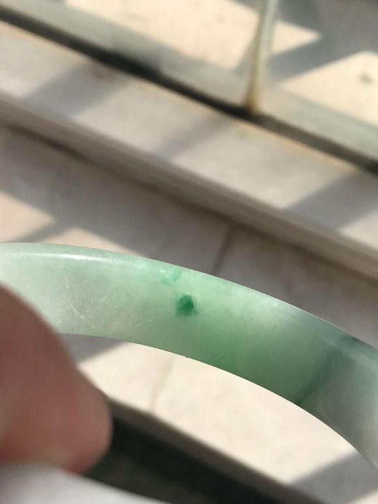 这手镯从种水颜色上来说还算不错!细糯春彩的,也够清新!种看起来不是很老那种,但整体效果不错!唯一缺陷就是问的玉友说的有抠感。如果有抠感,说明要么是结晶颗粒(天然特征),要么就是纹裂。