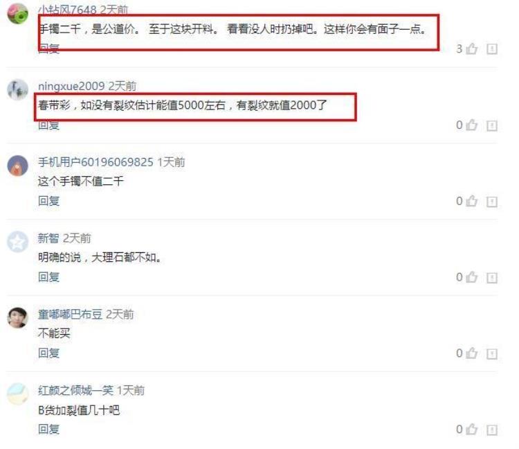 但就价值而言,这手镯2000的价倒还是挺合适的,如果自己不介意,或者有意的话,结缘也是没问题的。要收的话,建议回去用金包一下裂的地方,以增加牢固性!