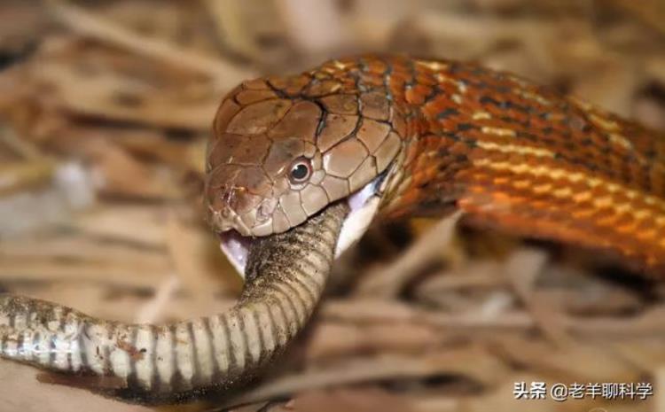 先来看看眼镜王蛇的食物名单:金环蛇、银环蛇、眼镜蛇、体型合适的蟒蛇、鸟类老鼠、甚至同类,它能有这么厉害,主要在于自己的体型够大,毒性够强,最重要的是自己体内竟然自带抗毒血清,基本上可以无视其他毒蛇的蛇毒,所以再厉害的毒蛇在它面前就是一根根辣条,是名副其实的蛇类煞星。
