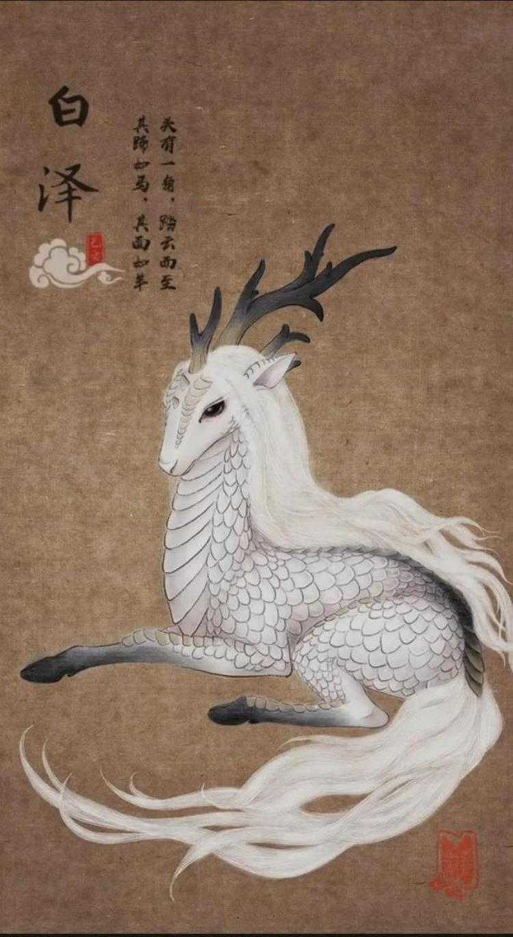 白泽,中国古代神话中的瑞兽。能言语,通万物之情,知鬼神之事,“王者有德”才出现,能辟除人间一切邪气。