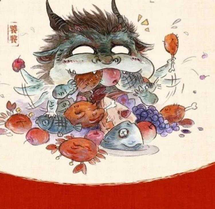 据《山海经·北次二经》记载:饕餮其形状如羊身人面,其目在腋下,虎齿人爪,其音如婴儿。是贪欲的象征,常用来形容贪食或贪婪的人。