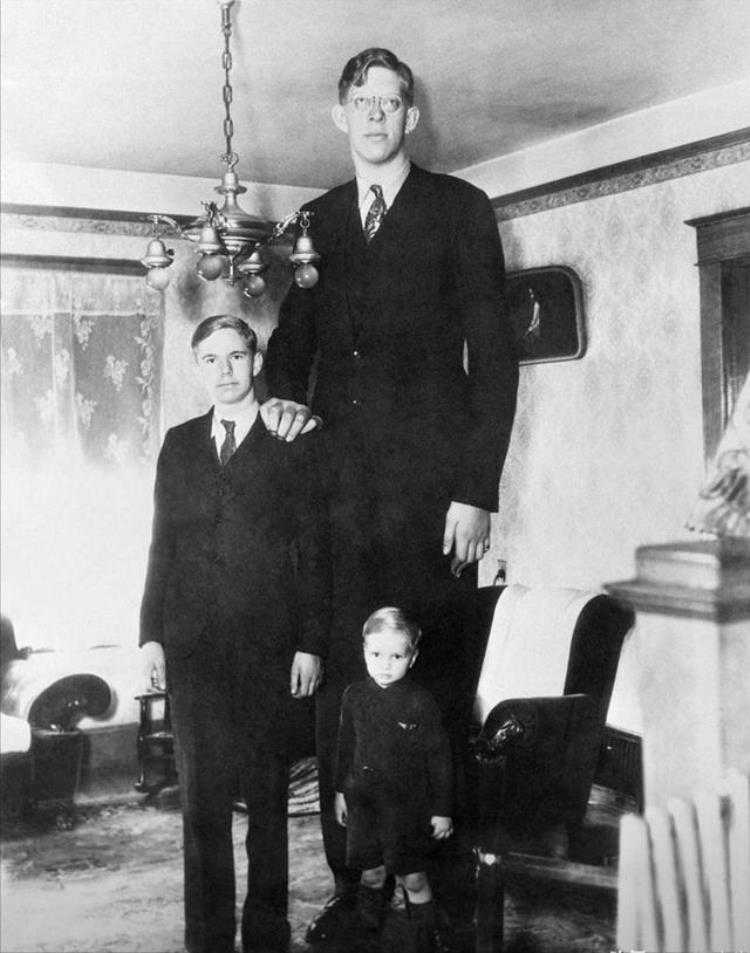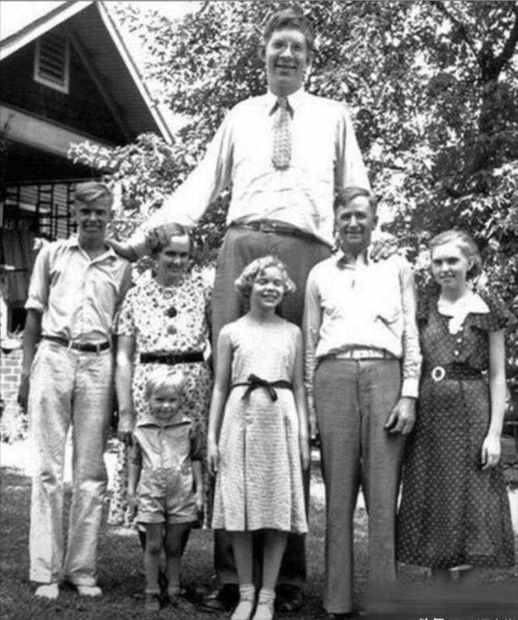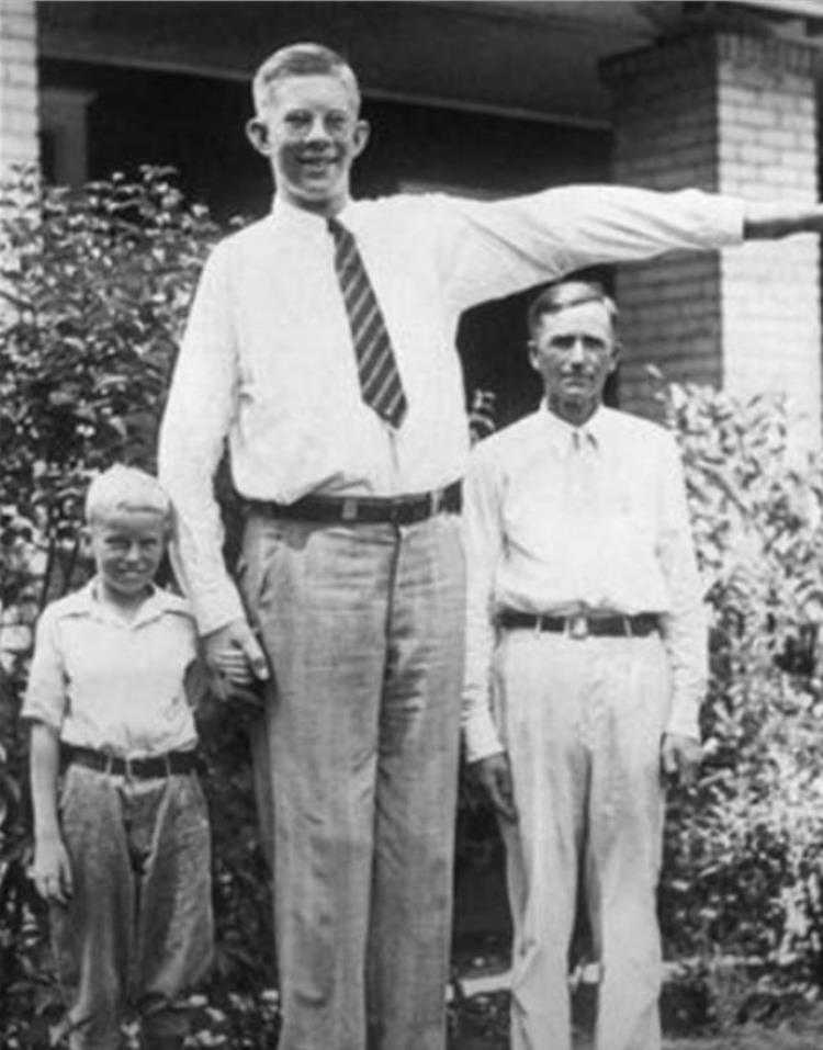 罗伯特·瓦德劳,出生于1918年,出生6个月他的体重已经达到了14公斤,是同龄儿的两倍;10岁时身高已经1.95米,到他12岁时,父母不得不认清“他不受控制地在长高”这个现实,带他到医院检查,那时他的身高已经达到了恐怖的2.11米;全面检查后,人们知道了小男孩疯长的原因:他患有垂体腺肿瘤,并被确诊为巨人症。