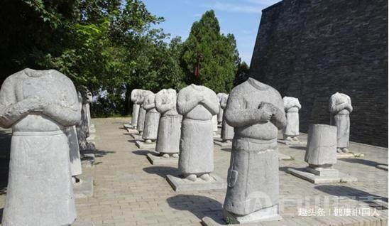 在乾陵的朱雀门外,东西共有61尊真人般大小的石人,这些石人两手前拱,模样谦恭。这些无头石人原本是有头的,现在还可以清晰地看到头颅被砸掉的痕迹。那么,他们的头是被谁砸掉的呢?一种说法认为:唐朝武则天时万朝来仪,陵前的石人是外国使臣和侨居的外宾,八国联军入侵时,看到外国人竟然向武则天称臣守陵,一怒之下,全部砸下了脑袋!另有人认为,明朝末年,乾县爆发了瘟疫,当地人发现,一到夜晚这些石人就会变成狰狞的妖怪,吃人播瘟。于是当地百姓拿起锄头,砸掉了石人的头颅。到底真相如何?只能等待研究发现了。