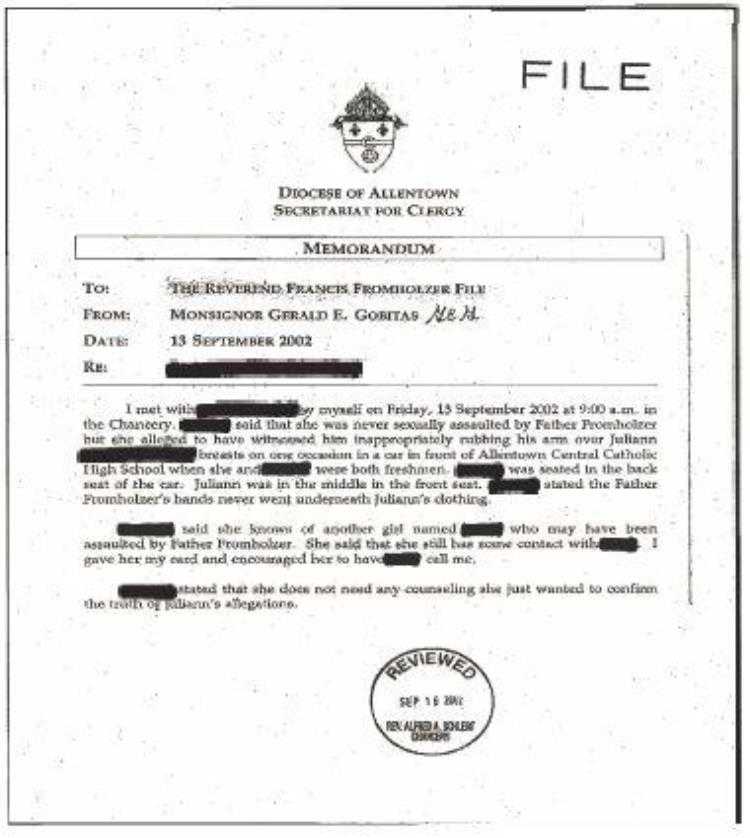 另一个案例中,对于承认自己强奸了至少15名男孩的神父,教区主教不但没有采取任何行动,反而称赞了他的“坦诚和真挚”,并对他“控制自己上瘾行为的进步”表示赞扬。在这名神父离开教区以后,主教还告诫他:“不要对你离开的原因做任何评论”。