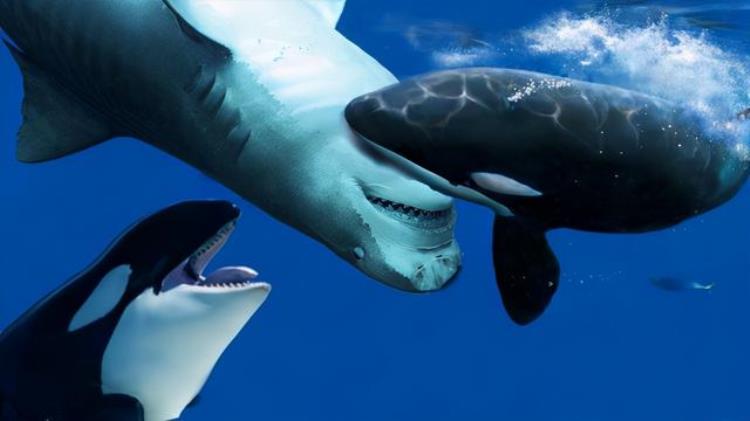 即使长着血盆大口,大白鲨面对虎鲸也会很怂。在某些海域,大白鲨非常害怕虎鲸,怕到只要有虎鲸经过,它们就会成群结队地逃跑。