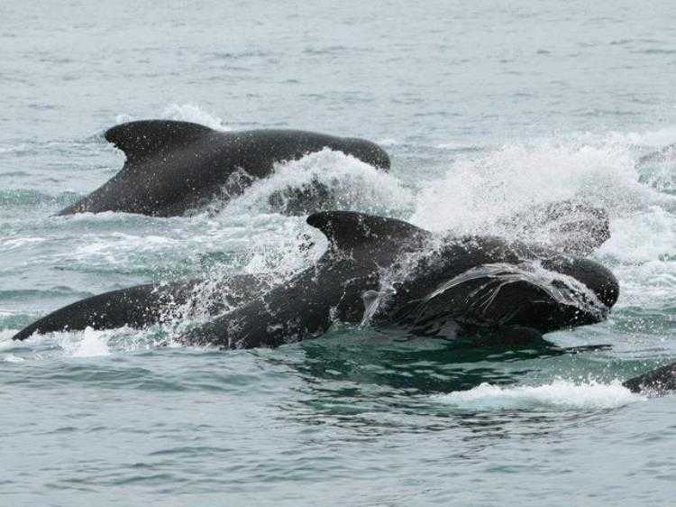科学家推测,领航鲸的行为可能和座头鲸一样,是一种反捕食策略,所谓敌人的敌人就是朋友。