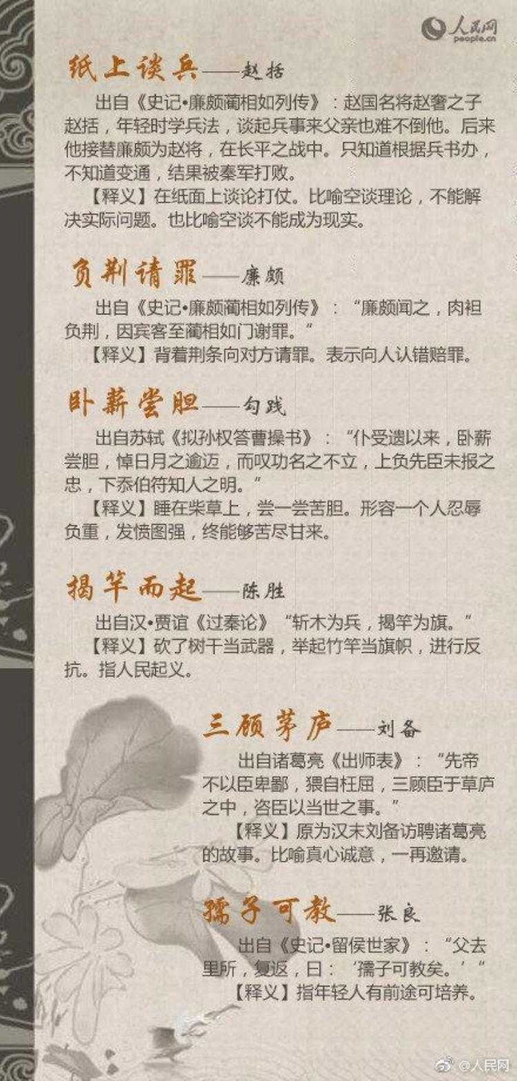 【长知识!这些成语,和他们有关】一个成语,一段故事。而故事中的主人公,你都了解吗?一鼓作气(曹刿guì)、图穷匕见(荆轲)、纸上谈兵(赵括)、负荆请罪(廉颇)、卧薪尝胆(勾践)、四面楚歌(项羽)……你还知道哪些?欢迎补充_