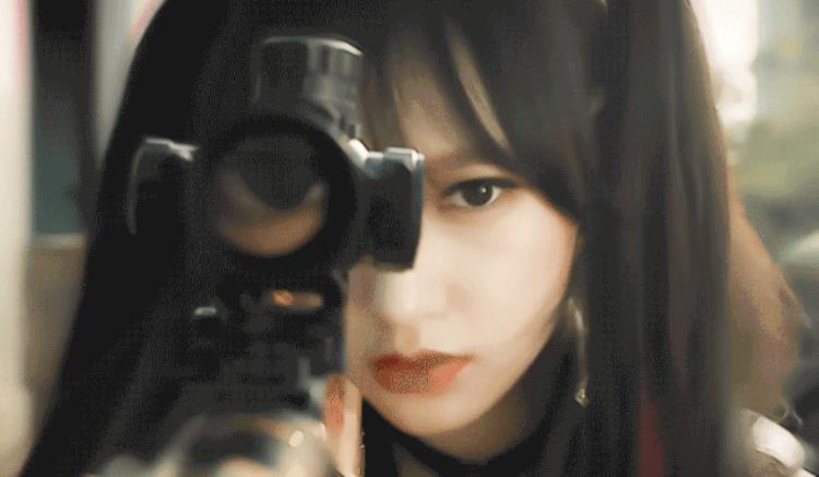 对着枪瞄准猎物的神情,气场强大到连头发丝都能打人。