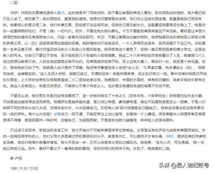 1991年11月1日中午12时02分,卢刚已经打算就在当天下午动手,动手前,他给自己的二姐写下了一封信。信中这样写道:我昨晚给你打完电话后,一个人哭得死去活来,我死活咽不下这口气。你知道我一生来正直不阿,最讨厌溜须拍马的小人和自以为是的赃官。