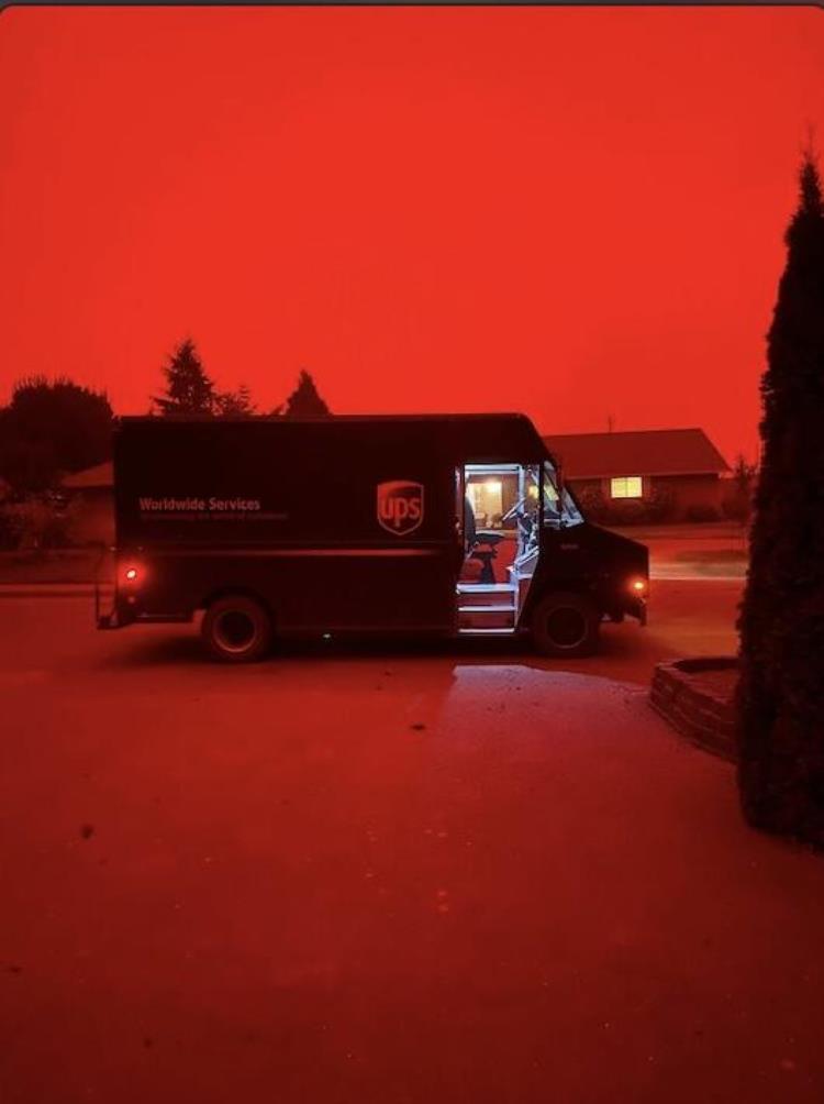 俄勒冈州的野火染红了整个天空,仿佛世界末日来临…
