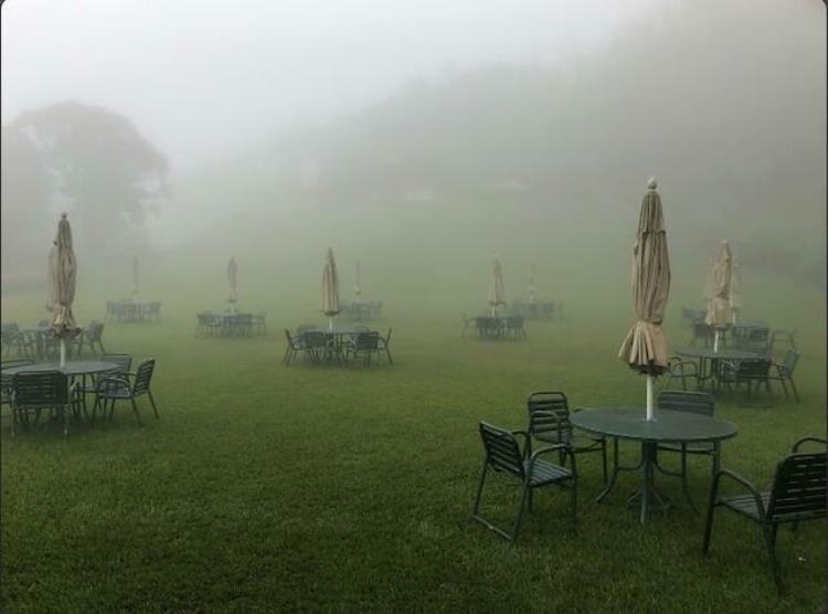 孩子们曾经玩耍的操场,空无一人,又笼罩着大雾…