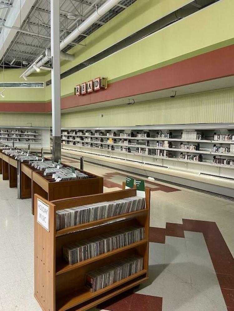 市里的图书馆在装修,书本被全搬到了一个旧超市