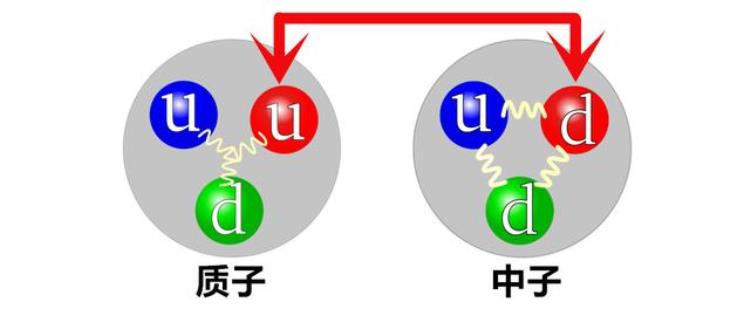 自由中子的衰变特性是天生的,因为中子是由两个下夸克和一个上夸克组成,在脱离原子核强相互作用力的束缚之后,其中一个下夸克会在弱相互作用力的主导下改变自己的“味道”,从而变成更轻的上夸克,在这个过程中它会释放一个电子和一个反中微子。当夸克的电荷发生改变后,中子就从对外不带电变成了对外带一个正电荷的质子了。