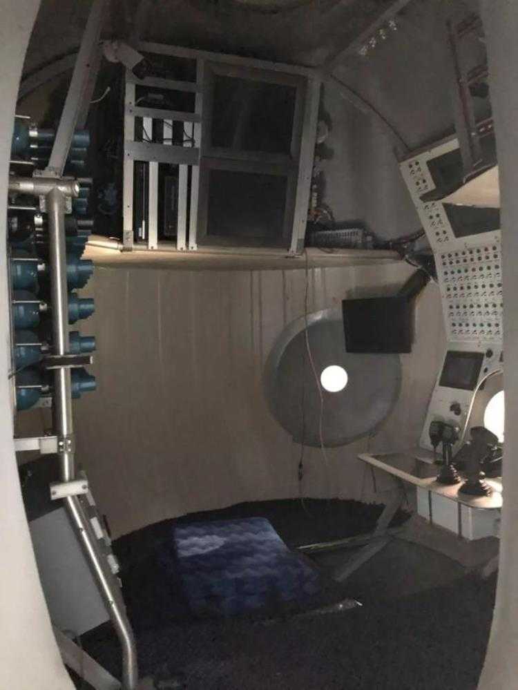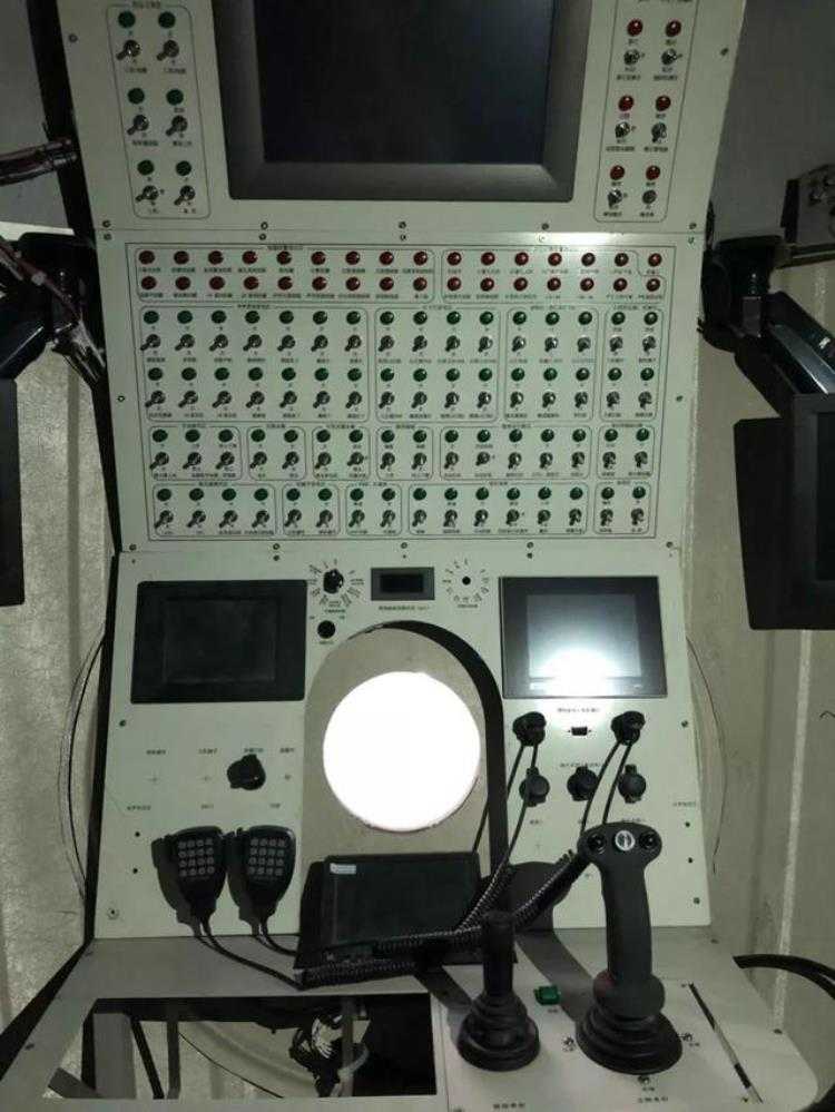 划重点,球形可是最抗压的形状。这个球舱直径2.1米,后面是生命保障系统,前面是操作台,包括潜器的控制杆、机械手的操作柄、对讲机还有一系列政知君看不懂的操作按钮。