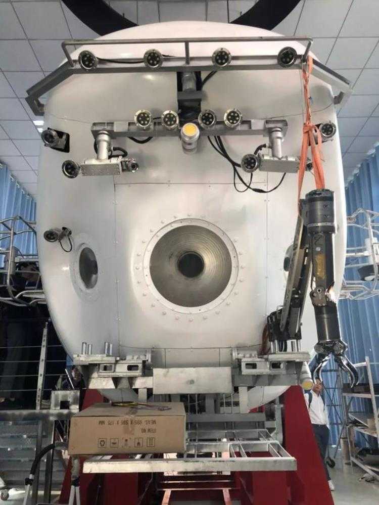 政知道(微信ID:upolitics)见到“蛟龙”的时候,它已经被拆解了,可以清晰看到球型的载人舱和其他内部结构,因为涉及核心技术,丁总工特意吩咐不要拍照,以免泄密。