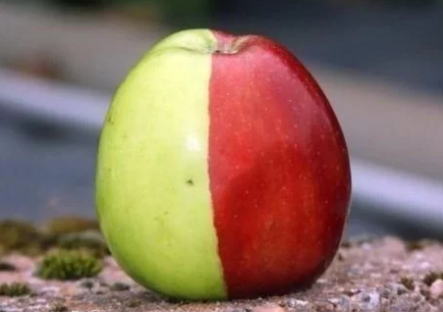 5.【奇怪的苹果】这可不是PS恶作剧,这是英国一位叫Ken Morrish 的老人在自家花园的果树上无意中发现的一个奇迹。这个苹果天然分成了半红半绿的两种颜色,而且几乎是从中间完美地区分开来。就连专家也大呼神奇,称这种情况只有百万分之一的几率。