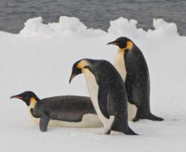 帝企鹅(学名:Aptenodytes forsteri):也称皇帝企鹅,是企鹅家族中个体最大的物种,一般身高在90厘米以上,最大可达到120厘米,体重可达50千克。其形态特征是脖子底下有一片橙黄色羽毛,向下逐渐变淡,耳朵后部最深。全身色泽协调。颈部为淡黄色,耳朵的羽毛鲜黄橘色,腹部乳白色,背部及鳍状肢则是黑色,鸟喙的下方是鲜桔色。帝企鹅在南极严寒的冬季冰上繁殖后代,雌企鹅每次产1枚蛋,雄企鹅孵蛋。雄帝企鹅双腿和腹部下方之间有一块布满血管的紫色皮肤的育儿袋,能让蛋在环境温度低达零下40摄氏度的低温中保持在舒适的36摄氏度。
