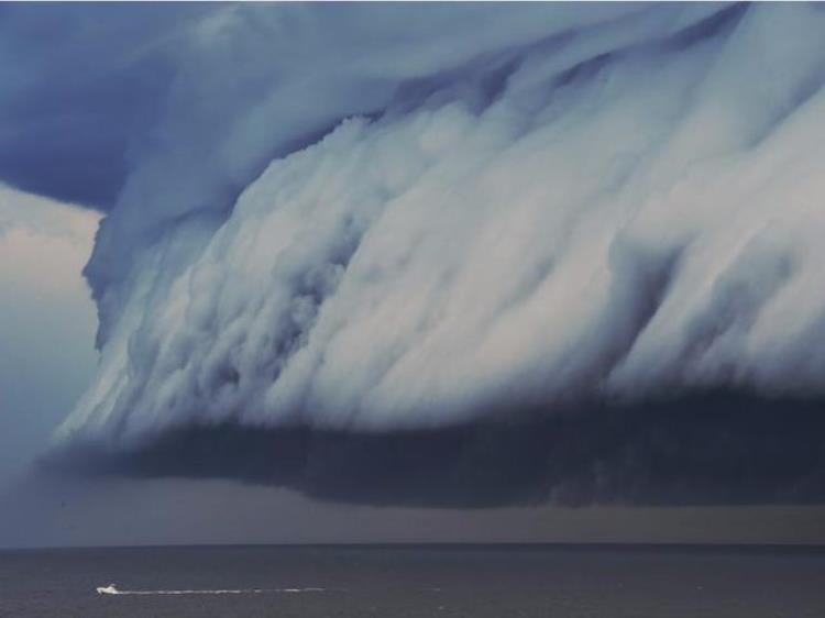 除了乳状云之外,什么云能够真正和灾害联系上呢?滩云(Shelf clouds),滩云又叫弧状云,出现时场面都比较壮观,但一般出现在海滩附近。滩云往往预示着暴风雨的来临,滩云出现后不久,就会出现强暴风雨,有时还会转变为龙卷风。