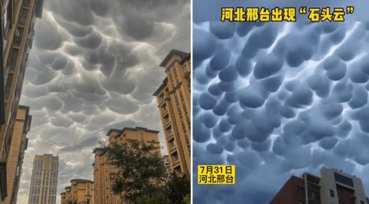 2021年7月末,河北邢台、邯郸、河南商丘几个城市的上空出现了大片奇特的云,这些云像一排排石头倒挂在天空中,人们称它为“石头云”。