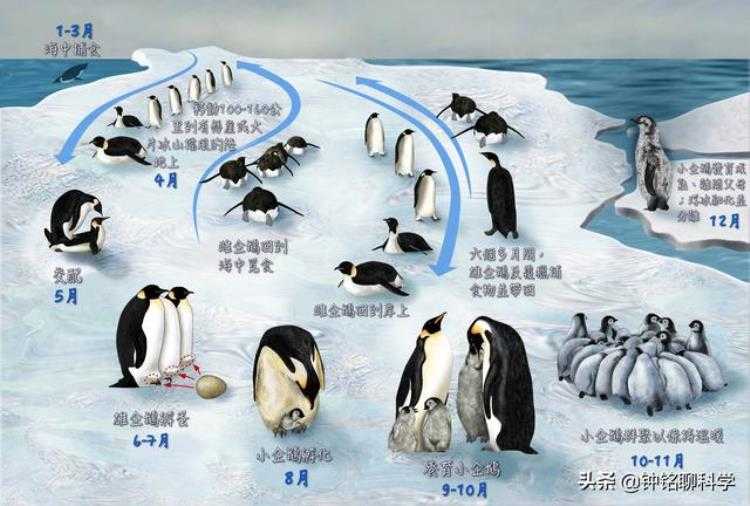 以帝企鹅为例,它们必须要在南极冬天来临之前回到自己的出生地交配,产卵,之后雌性企鹅就会因产卵过于耗费能量,而返回海洋觅食,只留下雄性孵化后代。