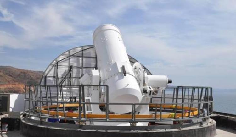 由南京天光所研制的位于云南抚仙湖观测基地的一米新真空太阳望远镜↑