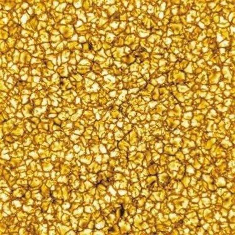 DKIST拍摄的太阳表面米粒结构,看上去如同金块,但每一块的面积都有几十万平方公里,相当于好几个河南省