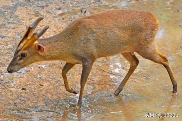 黄麂(jǐ),又叫赤麂、印度麂、婆罗洲红麂、红麂、南红麂、吠鹿等,是麂类中体形最大一种。它们喜欢独居,胆小谨慎,叫声似狗吠,有固定的活动范围,白天休息,晚上出来活动、觅食。植物嫩枝、叶、花、果实等它们都吃,食物匮乏的时候,它们还会盗食人类农作物。