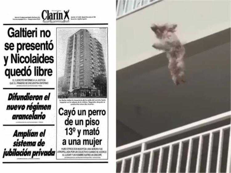 1988 年 10 月 21,阿根廷布宜诺斯艾利斯,一只贵宾犬从13楼坠落,砸到了一名75岁的妇女,她当场死亡。另一位女士匆匆穿过大街,可能是为了帮忙,被一辆公共汽车碾过。见此怪诞情况,旁边的一名吃瓜男子心脏病发,送医途中死亡…