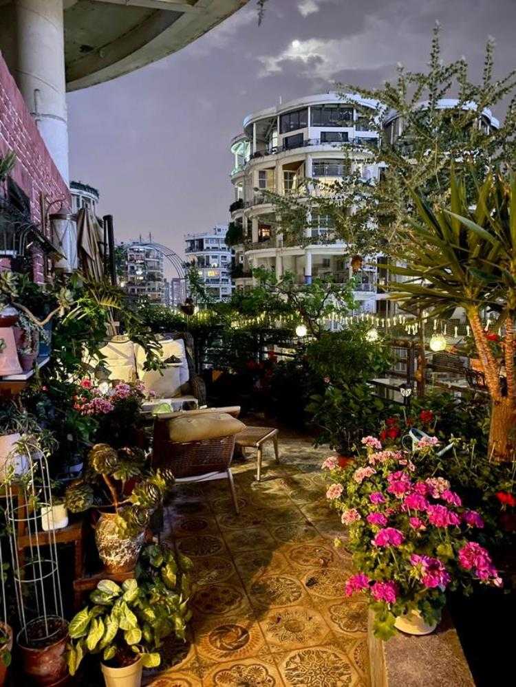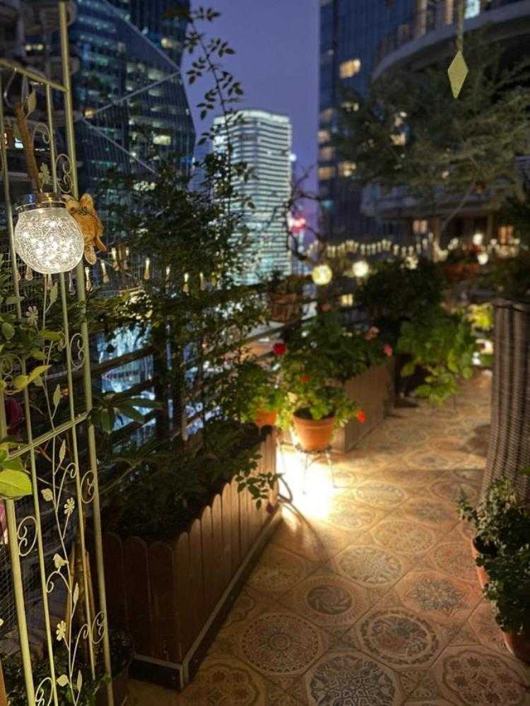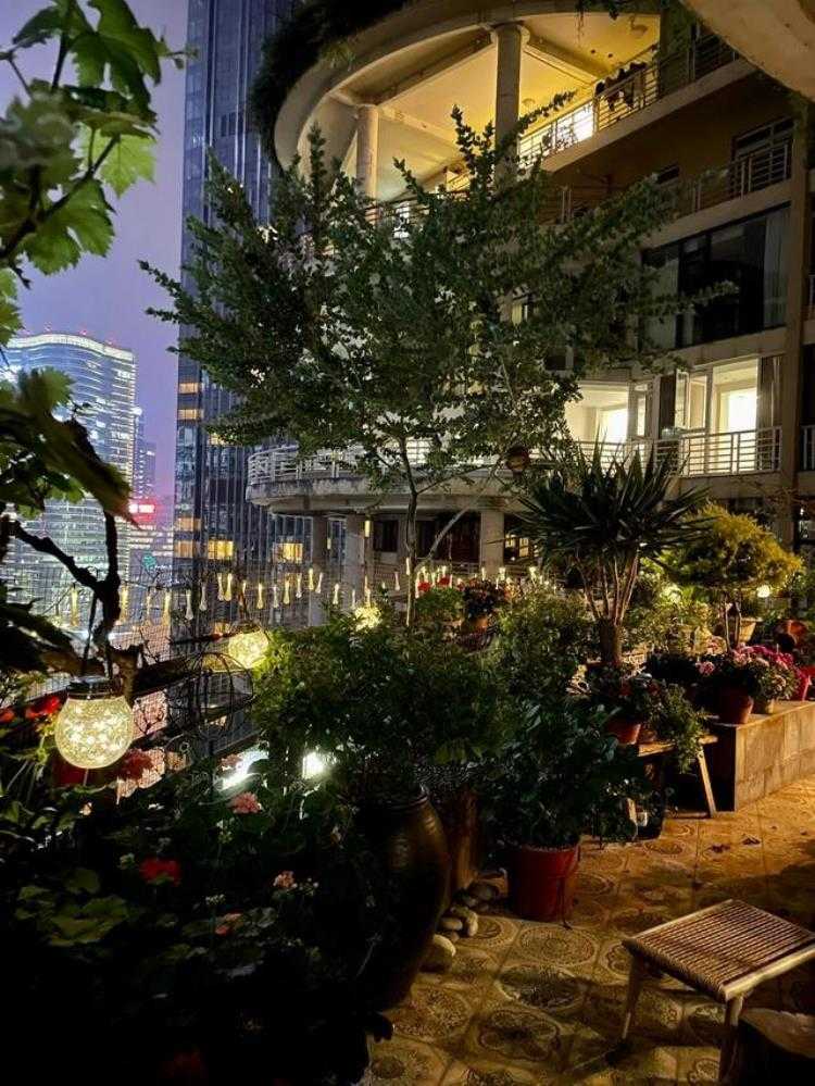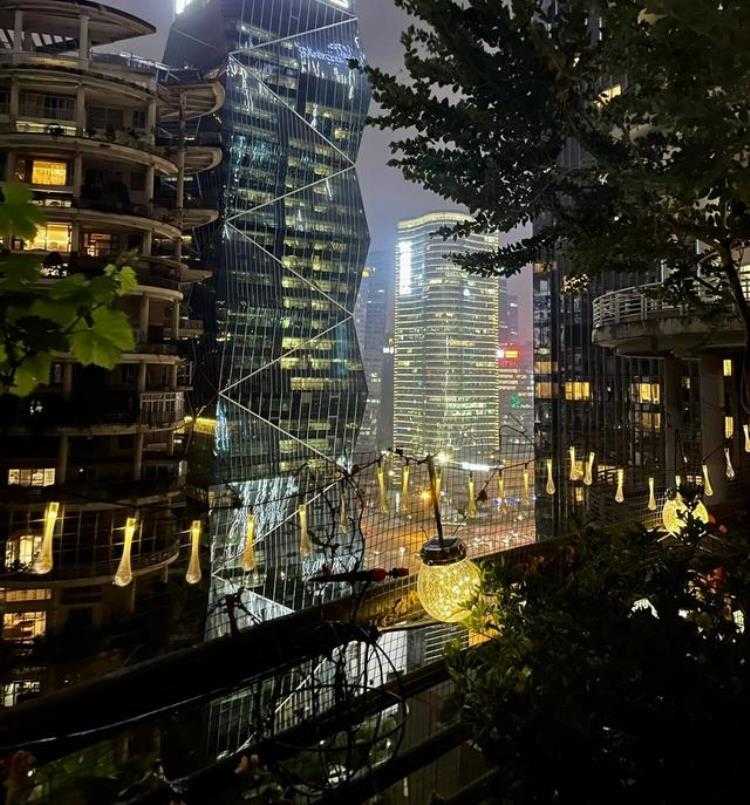 空中花园的夜晚非常美丽,晚上的阳台,即使不开灯,也充满了气氛
