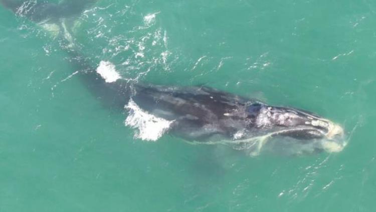 棉尾巴只有11岁——露脊鲸据信可以活到70岁甚至上百岁,但现在平均寿命只有45岁。去年10月份人们在南塔开特岛附近发现了它,虽然它很健康,但它的日子注定已不多了,因为它的嘴里缠着一条粗壮的绳索,拖在身后比它身长还要长三到四倍。这对露脊鲸来说是很常见的,但如果无法摆脱的话,就是它们死亡的开始。